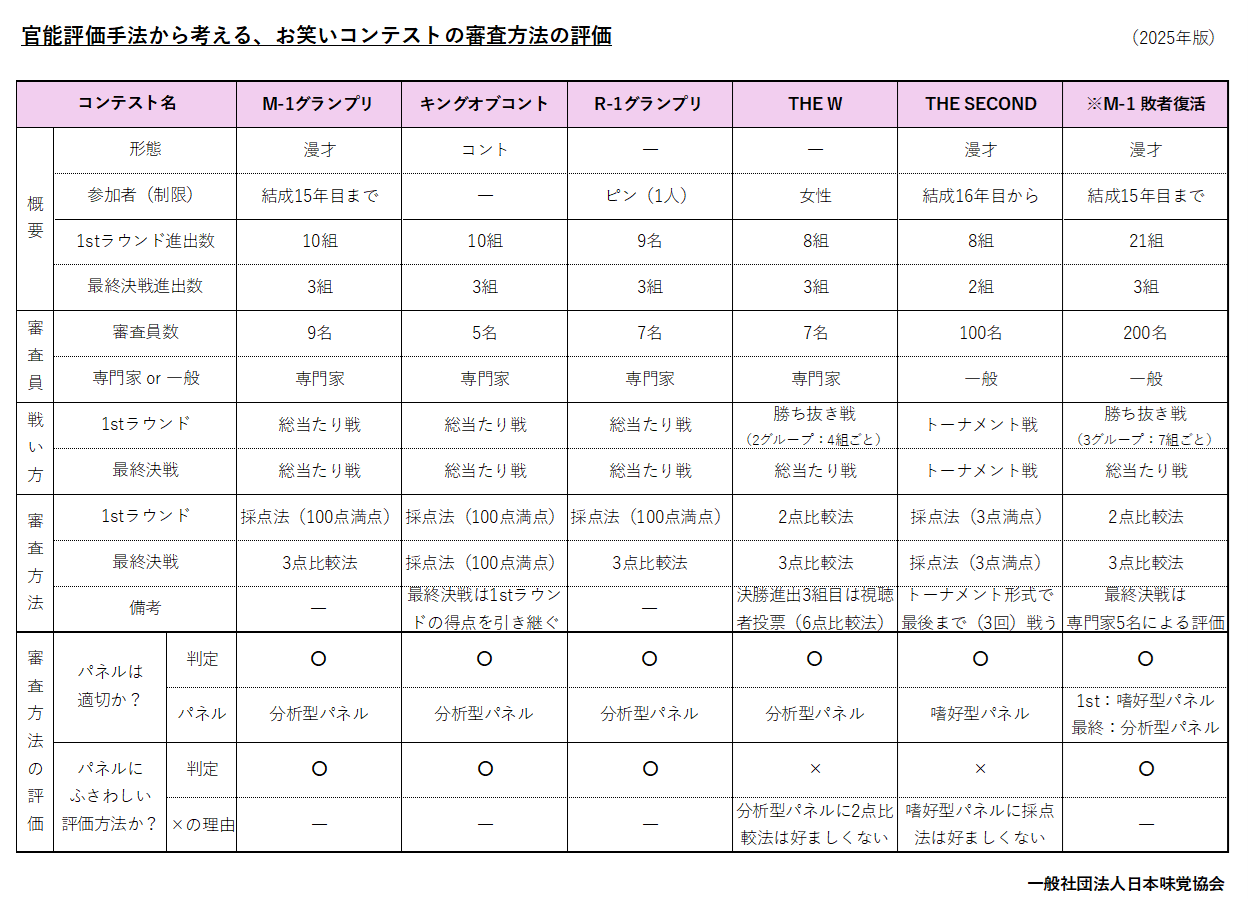 ※参考記事:漫才「ザセカンド」の審査方法は正しい?~官能評価の方法から考察する~